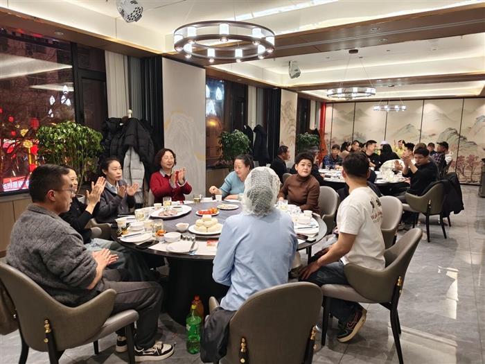 團(tuán)圓宴上,大家卸下工作的疲憊,圍坐一堂、暢談心聲,分享著一年來(lái)工作中的收獲與感悟,訴說(shuō)著生活里的喜悅與期許,現(xiàn)場(chǎng)暖意融融、溫情涌動(dòng)。